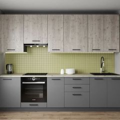 Фасады верхних модулей со свесом 12 мм дают возможность использовать без установки ручек.